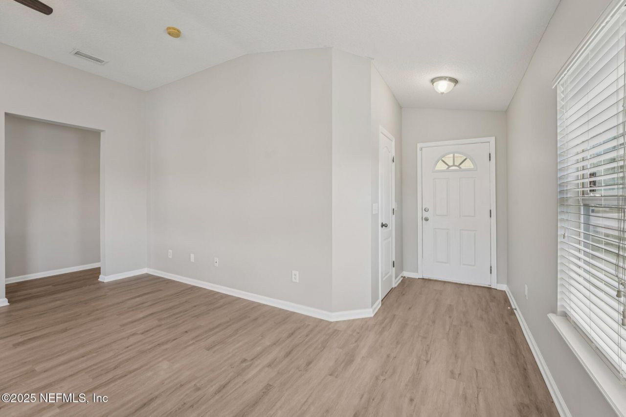 Discover this move in ready 3 bed, 2 bath single-story home with 1,611 sq ft, built in 2005. The open floor plan welcomes natural light into spacious living and dining areas. The kitchen includes updated stainless steel appliances and ample storage. New laminate wood floor throughout and no carpet. The primary suite offers a large soaking tub, separate shower and generous sized closet. Enjoy serene water views in the back yard and low HOA fees. Located in Oceanway near River City Marketplace--plus parks, trails, and just 14 minutes to JAX Airport. Atlantic Beach and area attractions are easily accessible. Some photos have been virtually staged to illustrate the property's potential.