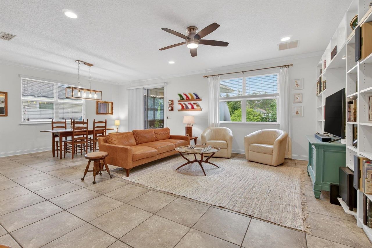 Beautifully updated 4-bedroom, 2.5-bath pool home with a saltwater pool, sun shelf, and private landscaped backyard,perfect for Florida living and entertaining. This move-in ready home features a highly desirable floor plan with the primary suite on the main level, along with an open-concept kitchen and living area designed for everyday comfort and easy hosting. Upstairs offers three spacious bedrooms plus a second living room/loft, ideal for families, guests, or a home office setup. Upgrades include solid white oak stair treads and durable Pergo Portfolio WetProtect waterproof laminate flooring throughout the upper level and downstairs primary suite. Step outside to your own backyard retreat, featuring a low-maintenance saltwater pool with sun shelf, surrounded by mature landscaping, magnolia trees, fruit trees, and holly for added privacy and a peaceful setting. Located in the 32084 sweet spot, just north of historic St. Augustine, with easy access to all that the area has to offer. Five miles to Vilano Beach, four miles to Downtown St. Augustine. This home provides the perfect balance of indoor comfort, outdoor living, and functional space.