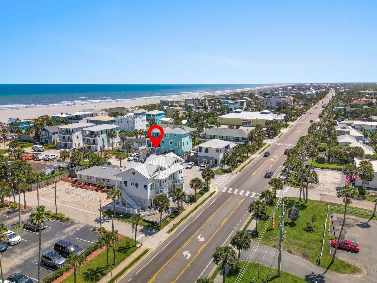 Turnkey Mixed-Use Investment Property on the Golden Mile - St. Augustine Beach *Please note MLS details (such as total sq footage) are for both buildings combined as there was no option to list mix-use buildings together. Breakdown of two buildings is in description & Feature Sheet in documents* An exceptional opportunity awaits with this fully furnished, income-producing mixed-use property, ideally situated along St. Augustine Beach's highly sought-after Golden Mile, where no vehicles are allowed to drive on the beach. Located just east of A1A Beach Blvd, the property is within walking distance to the ocean, St. Augustine Pier, popular restaurants, and boutique shopping. Historic Downtown St. Augustine is just 4.5 miles away, offering the perfect blend of coastal charm and accessibility. This unique property features two buildings on a commercially zoned lot, offering both residential and commercial functionality. The first structure, a classic one-story duplex built in 1955, includes two fully equipped short-term rental units. Each unit offers two bedrooms, two full bathrooms, a kitchen, and a combined living and dining area. Unit A also includes an enclosed sunroom that houses a second dryer. Recent improvements include a new roof (2020), new HVAC systems (2021), newer washers and dryers, new mattresses and furnishings, and all new faux wood blinds installed in early 2025. The duplex was painted inside and out in 2020 and includes an outdoor pergola ideal for guest relaxation and barbecues. There is parking space for at least four vehicles in front of the duplex. In addition, the front of the duplex for both units has a large paver area for outside seating and enjoyment.The total building area is approximately 2,448 square feet, with 1,882 square feet heated and cooled. The second building is a modern, two-story mixed-use structure built in 2022, offering two commercial units on the ground floor and two fully furnished short-term rental condos above. The first floor consists of two separate commercial spaces, currently occupied by a real estate office and an art gallery. Each space includes a half bathroom and a wet bar-style area. This level includes 2,279 total square feet, with 1,375 heated and cooled, and the balance comprised of porches and deck areas finished with durable Trex decking. Upstairs, the second floor features two turnkey short-term rental units, each with two bedrooms, two full bathrooms, a kitchen, and a combined living/dining space. These stylish, fully furnished condos were designed for guest comfort, with high-end appliances, blackout bedroom shades, new mattresses and furnishings, and quality finishes throughout. The second floor offers 2,427 total square feet, of which 1,585 is heated and cooled. The mixed-use building also includes a full sprinkler and fire suppression system across all three floors, with an alarm directly connected to the fire department and annually inspected. It features hurricane-rated windows and doors, 800-amp electrical service with surge protectors in each of the upstairs condo unit panels, powder-coated aluminum exterior stairways, and pervious paver parking in the rear. Under this rear pervious paver parking lot there is a stormwater drainage system that was designed and installed for collection and aquifer recharge. There are four tandem parking spots designated for condo guests, one handicapped space, an additional six to seven general parking spaces, and four spaces reserved for the commercial real estate tenants. A fenc