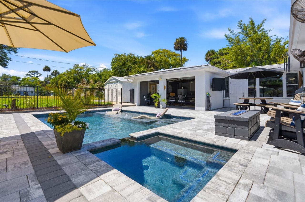 Historic Charm, Modern Luxury, and a Backyard That Feels Like a Resort! Welcome to 1212 Magnolia Street, a beautifully updated coastal retreat in the heart of historic New Smyrna Beach. This thoughtfully designed 3-bedroom, 2-bath residence offers 1,794 square feet of comfortable living and a 2-car garage, blending modern upgrades with timeless Florida charm. The garage offers versatile space ideal for storage, hobbies, or a relaxed poolside retreat, adding flexibility to suit a variety of lifestyles. Step inside to discover a light and inviting interior featuring new paint (2023), new flooring in entryway and two bedrooms (2025), and a desirable split floor plan ideal for both privacy and entertaining. The open kitchen is a chef's delight, showcasing granite countertops, stainless steel appliances, a natural gas range, tile backsplash, and a convenient breakfast bar that anchors the living space. Outdoors, your private oasis awaits. A resort-style pool added in 2023 features a sun shelf, expansive paver deck, and jacuzzi, perfect for relaxing or hosting gatherings. Recent enhancements include new landscaping, fencing, and a dedicated irrigation well, creating a lush yet low-maintenance setting. This home offers peace of mind with newer windows and sliding doors, a metal roof (2013), Siemens electrical panel, and a 2014 gas tankless water heater. For added versatility, the property includes an RV hookup with 50-amp service and a dump station. Ideally located just a short walk to Canal Street, Riverside Drive, and the Yacht Club, this home places you in the center of New Smyrna Beach's most beloved shops, dining, and waterfront lifestyle. A rare opportunity to own a move-in-ready pool home with exceptional upgrades in one of the area's most sought-after neighborhoods.