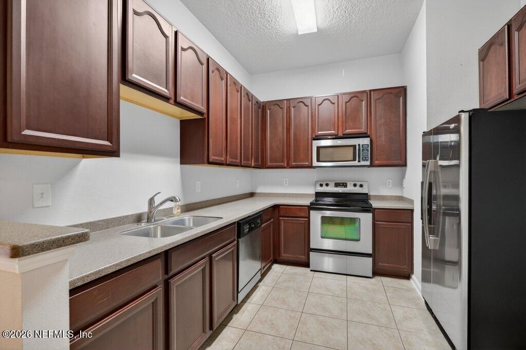 Located within the gated Herons Landing community, this ground-floor 3-bedroom, 2-bath condo with an attached 1-car garage offers low-maintenance living in a highly convenient Jacksonville location, an excellent option for first-time homebuyers or a strong addition to an investment portfolio.The HOA includes cable, internet, water, sewer, and exterior landscaping, helping simplify monthly expenses and reduce ongoing maintenance responsibilities.Inside, tall ceilings and a well-designed split-bedroom floor plan create an open, airy feel centered around a spacious family room. The kitchen connects seamlessly to the main living area and features 42-inch dark cabinetry and stainless steel appliances.Just off the kitchen, an oversized laundry room provides additional storage and offers direct access to the garage, adding everyday convenience and functionality. Privately situated at the rear of the home overlooking the pond, the owner's suite features a walk-in closet and an en-suite bath. One of the secondary bedrooms includes French doors, making it an ideal office, flex space, or guest retreat, while the third bedroom offers additional flexibility for family or visitors.Step outside to the covered patio and enjoy peaceful pond views, a perfect setting to relax. An exterior storage closet adds even more functional space.Community amenities include a pool and playground, all within a secure gated setting.Ideally situated just minutes from Mayo Clinic, the Jacksonville Beaches, St. Johns Town Center, JTB, shopping, and dining. This location offers easy access to everything while maintaining a quiet residential feel.