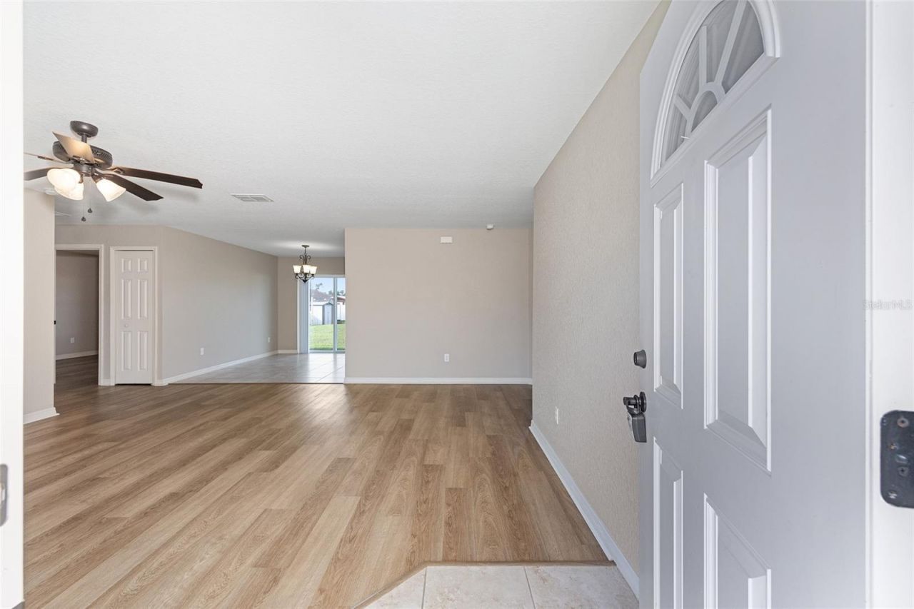 This beautiful and well-maintained home features 3 spacious bedrooms and 2 full baths, plus an attached 2-car garage. The kitchen shines with gorgeous cabinets and comes equipped with a refrigerator, range with hood, and dishwasher. The primary suite includes a walk-in closet for added convenience. Home also features gutters that surround the entire home for added protection and curb appeal. Enjoy easy-care tile and LVP flooring throughout, high-efficiency windows, and a freshly painted interior. Located in the growing Marion Oaks community, this home offers quick access to I-75 and a shorter drive to Orlando - perfect for commuters or anyone seeking comfort and convenience!