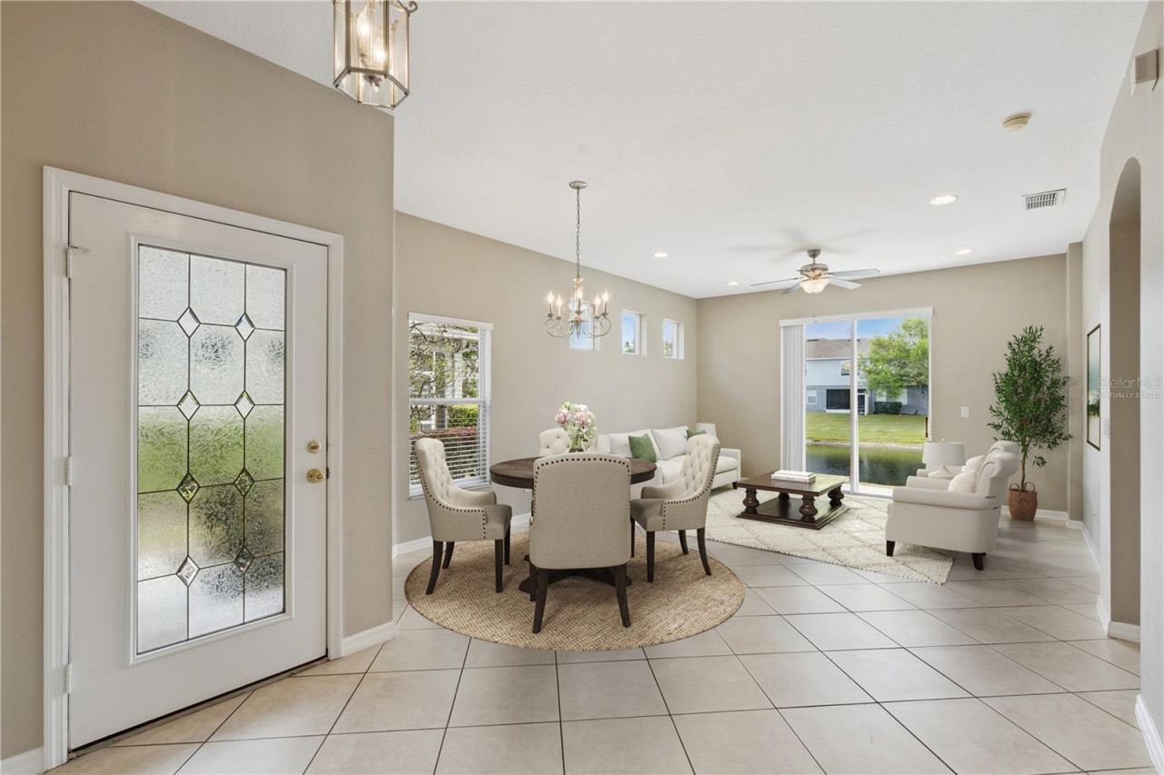 One or more photo(s) has been virtually staged. Welcome to maintenance-free, resort-style living in one of Sanford's most desirable Gated Communities. Welcome to a city where charm, culture, and community spirit come together in the most unforgettable ways. This home is nestled within Greystone, a meticulously maintained community. You will love driving home to the gorgeous stone gated entrance, beautifully landscaped with tree-lined streets. A welcoming private walkway leads to the front entrance of this three-bedroom, two-bath, two-car garage, single story, end-unit Townhome. This 'Austria' floor plan offers 1,386 SF of bright, open living space. Step inside to an inviting split floor plan with an airy feel. The Kitchen with ample counter space features a Breakfast Bar with pendant lights, a pantry and recessed lighting. Sliding glass doors in the Living Room frame the serene water view with a relaxing fountain water feature beautifully filling the home with natural light. The Primary Suite is a peaceful retreat offering a very SPACIOUS Walk-In Closet and an en-suite Bathroom with a separate shower and relaxing garden tub, ideal for unwinding after a long day. Enjoy tranquil mornings and breezy evenings on your patio overlooking the serene pond. Residents enjoy an impressive lineup of resort-style amenities, including a large sparkling community pool with ample seating and pool-side loungers surrounded by gently swaying palm trees. A Clubhouse with full kitchen, entertainment area, restrooms, fitness center and playground. The tree-lined sidewalks are perfect for dog walking and neighborly chats. The homeowner's association fee covers landscaping, grass cutting, trimming hedges, edging, mulching, fertilizer and exterior maintenance, making this a truly low-maintenance, lock-and-leave home. New Roofs were installed in 2019. Located close to Lake Mary, SR-417, I-4. Nice and close to great shopping - Super Target, World Market, Marshall's, Ross and a new COSTCO coming to the Seminole Town Center location in 2027! Zoned for top-rated Seminole County Schools, this community is ideal for those seeking convenience. These Taylor Morrison upmarket townhomes have just about everything you have been looking for, and this popular floor plan rarely becomes available. Don't miss your chance to call this peaceful, waterfront end unit your new home. Exterior repainting planned to take place in 2026!