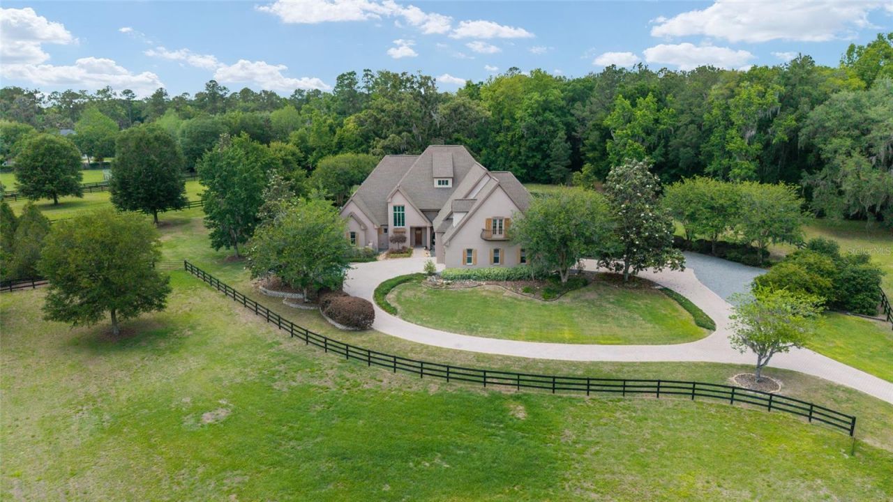 Nestled within the prestigious Country Club Farms and set across more than 5 private acres, this exceptional custom estate offers a rare blend of refined luxury, thoughtful design, and equestrian-friendly living - all just minutes from downtown Ocala, championship golf, the Country Club of Ocala, and top-rated schools. With bridle trail access woven throughout the community and the option to acquire an additional neighboring 6 acres, this property presents a truly rare opportunity to create a private legacy estate in one of Ocala's most coveted settings.Built with enduring quality and timeless craftsmanship, the residence features 10-foot ceilings, extensive crown molding, solid-core doors throughout, 40-year architectural shingles, surround sound, and an abundance of custom storage and closet space. A private residential elevator connects both levels, offering ease and accessibility while enhancing the home's sense of quiet luxury.The heart of the home is a beautifully appointed chef's kitchen, complemented by a butler's pantry and flowing seamlessly into the formal dining room and an elegant study or library with a gas fireplace, ideal for intimate gatherings or peaceful evenings. The expansive family room offers a second fireplace, while a separate living or game room opens directly to the outdoor entertaining spaces, creating a natural flow between indoor and outdoor living.The primary suite is privately situated on the first floor, creating a serene retreat, and is joined by an additional guest bedroom and full bath on the main level. Upstairs, three additional ensuite bedrooms and a theater room, which may also serve as a playroom, den, or flexible bonus space, provide exceptional comfort and versatility for family and guests alike.Outdoors, the estate transforms into a private resort-style sanctuary. A solar-heated saltwater pool is surrounded by pavered patios, fire pit seating, and screened entertaining areas, all framed by mature landscaping and tranquil views that offer privacy and serenity in every direction.Designed for both luxury and function, the property also includes a four-car garage, a full-house generator, a whole-home water filtration system, and two private wells - one dedicated to irrigation and one servicing the residence. Recent upgrades include three new air conditioning systems in 2024, a new water heater in 2024, a new dishwasher in 2024, a new washer in 2025, and a new dryer in 2024, offering peace of mind and modern efficiency.The property is fully fenced and thoughtfully designed with paddocks, a dog run, and direct bridle trail access, making it ideally suited for equestrian living while remaining just minutes from modern conveniences. This is not simply a home - it is a refined estate where privacy, elegance, and lifestyle converge in perfect harmony.
