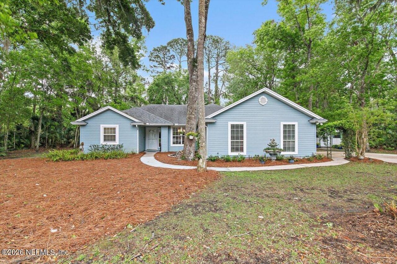 Welcome home to a little touch of country in the city. This beautiful pool home sits on 1.3 acres and includes joint ownership of a pond adjacent to the home. The large treed lot provides both shade and privacy from neighbors. Tons of room for play and planting. The house has a great layout with split bedrooms. The kitchen and family room sit in the center of the home w/ great views of the pool, pond and backyard. The kitchen is bright and open with a custom tile floor and backsplash. The primary bedroom has access to the pool area. The septic system updated/replaced in 2025. Roof in 2019, HVAC in 2022. The home is in close proximity to the award-winning St. John's County schools. Go fishing in your backyard or just enjoy the scenery and serenity. See what laid back life is all about.
