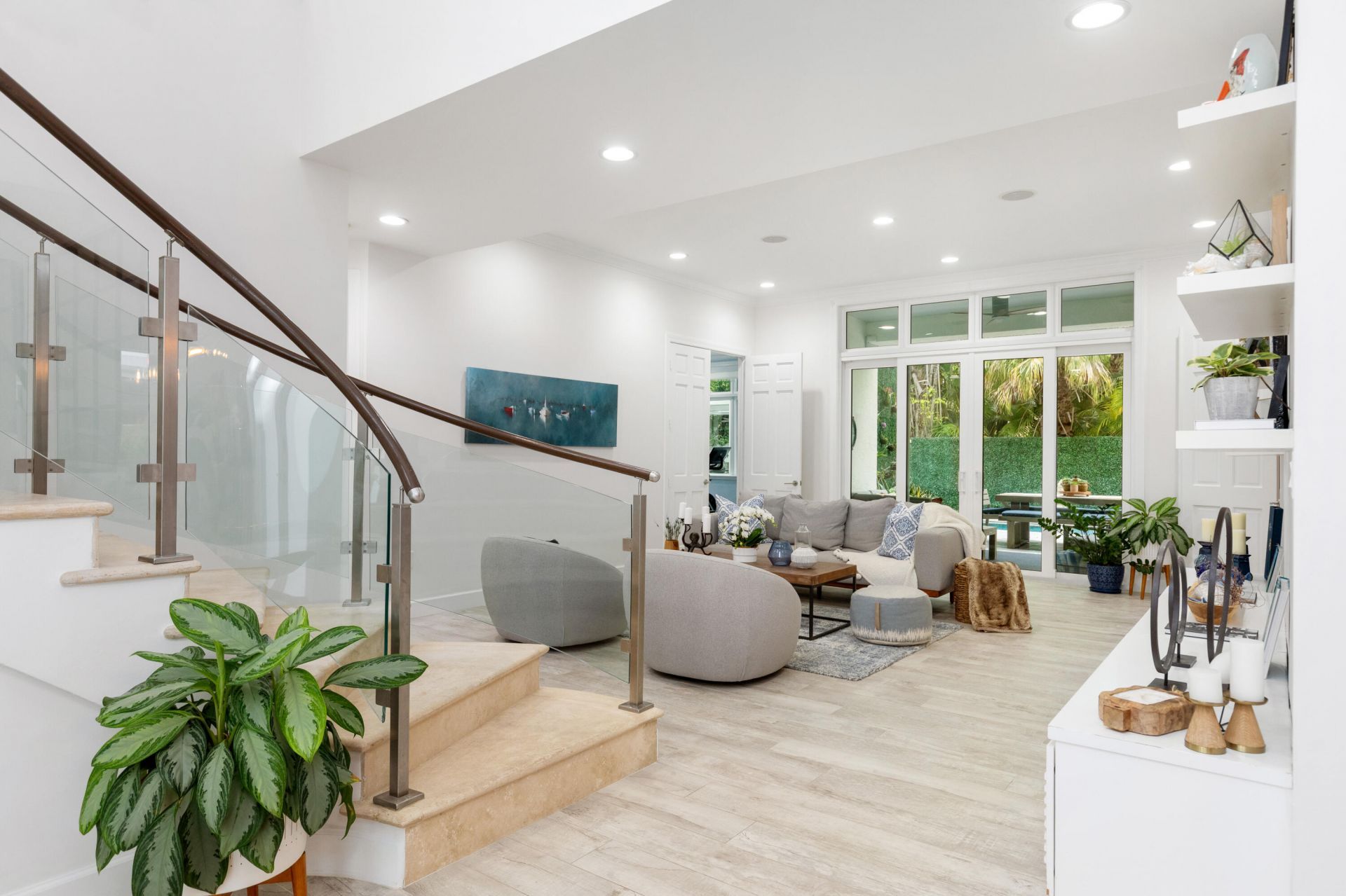 Experience island living at its best in this renovated 4,220SF estate within Grand Bay Estates, Key Biscayne's only guard-gated single-family enclave! This 5BR/5.5BA home features a 2021 roof, 2022 tankless water heaters, new AC units and full storm protection! The kitchen shines with Quartz counters & Sub-Zero, Wolf, & Miele appliances, plus a dual-zone Sub-Zero wine fridge. The versatile layout includes all en-suite bedrooms, staff quarters, & private in-law suite with its own entrance. A rare find for Key Biscayne is the climate controlled 2-car garage plus golf cart garage. The backyard oasis offers a heated saltwater pool, summer kitchen & retractable awnings, perfect for entertaining! HOA covers lawn care, 24hr security, pool maintenance, pest control, plus private park & playground! For the ultimate experience in luxury and privacy, look no further!