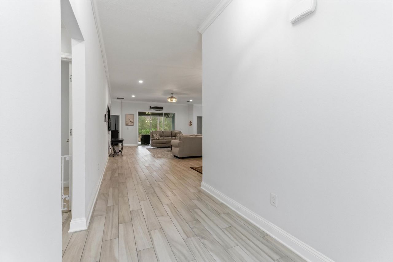 Don't miss this pristine 4 bedroom, 3 bathroom home in the private, quiet, gated community of Lakewood Pointe-just minutes from the beach. The neighborhood features a dog park, community park, and playground, making it an ideal coastal retreat. Step inside to a spacious split floor plan with a private guest suite and full bath on one side of the home. This beautifully maintained property is loaded with upgrades, including wood-plank tile flooring, crown molding throughout, and plantation shutters. You'll love the bright, open kitchen + living room layout, featuring: Stainless steel appliances Double oven & top-range stove Large island Walk-in food pantry Laundry room with washer & dryer included Water softener system The primary bedroom offers tray ceilings, crown molding, and a luxurious walk-in tiled shower. Relax on the large screened-in lanai overlooking a peaceful conservation preserve-your own private slice of nature. And yes? it also includes a 3-car garage, perfect for extra storage, beach gear, or your favorite toys. This home is immaculate, spacious, and truly has it all.