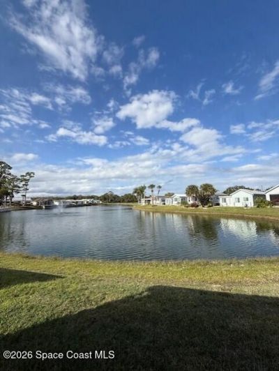 This bright and cheery custom home has a view of the pond and parking for an RV. There is a covered patio out front to enjoy the rocket launches from This one bedroom and two full baths home has a large modern kitchen and can be enjoyed as your seasonal retreat or full time Florida resort living. This home sits close to the clubhouse, heated pool, and mailroom to enjoy the many activities and amenities. There is tennis, pickleball, shuffleboard and a public executive golf course located within the park. You will be near airports, shopping, restaurants, beaches and theme parks.