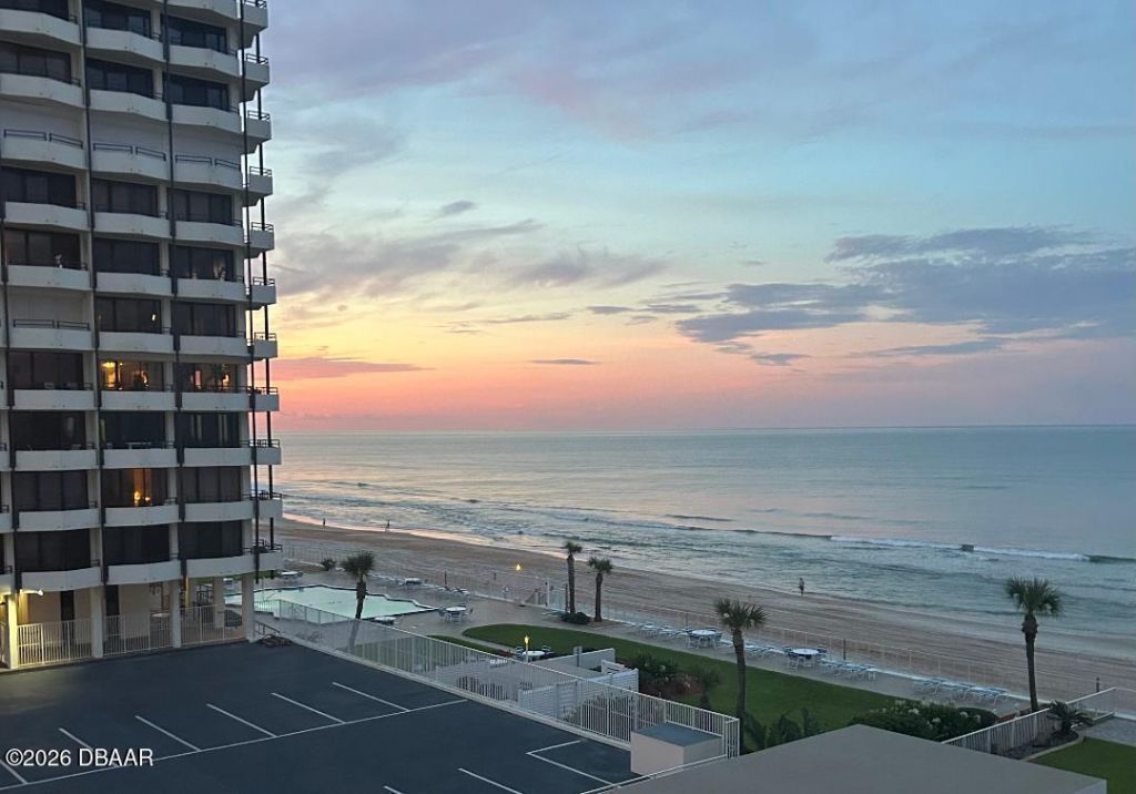Rare opportunity to own a condo with a 78-foot wrap-around balcony offering expansive views and true indoor-outdoor coastal living. Welcome to Unit 305, a beautiful turnkey 2bd/2bath, VA approved condo in the heart of Daytona Beach. This features updated bathrooms and a modern kitchen with granite countertops & stainless steel appliances. Tile flooring runs throughout while the bedrooms offer comfortable carpeting. Floor-to-ceiling sliders open to an impressive 5' x 78' wrap-around balcony, perfect for enjoying ocean breezes, morning coffee, or evening sunsets. This unit comes with a assigned garage parking along with a heated pool, direct beach access, a BBQ/picnic area, & a private community room. Furniture is negotiable with the right offer, making this an easy move-in or investment opportunity. Two pets under 20lbs & rental opportunities with a three month min. Conveniently located just steps from local restaurants, nightlife, & the World's Most Famous Beach. All information recorded in the MLS is intended to be accurate but not guaranteed.