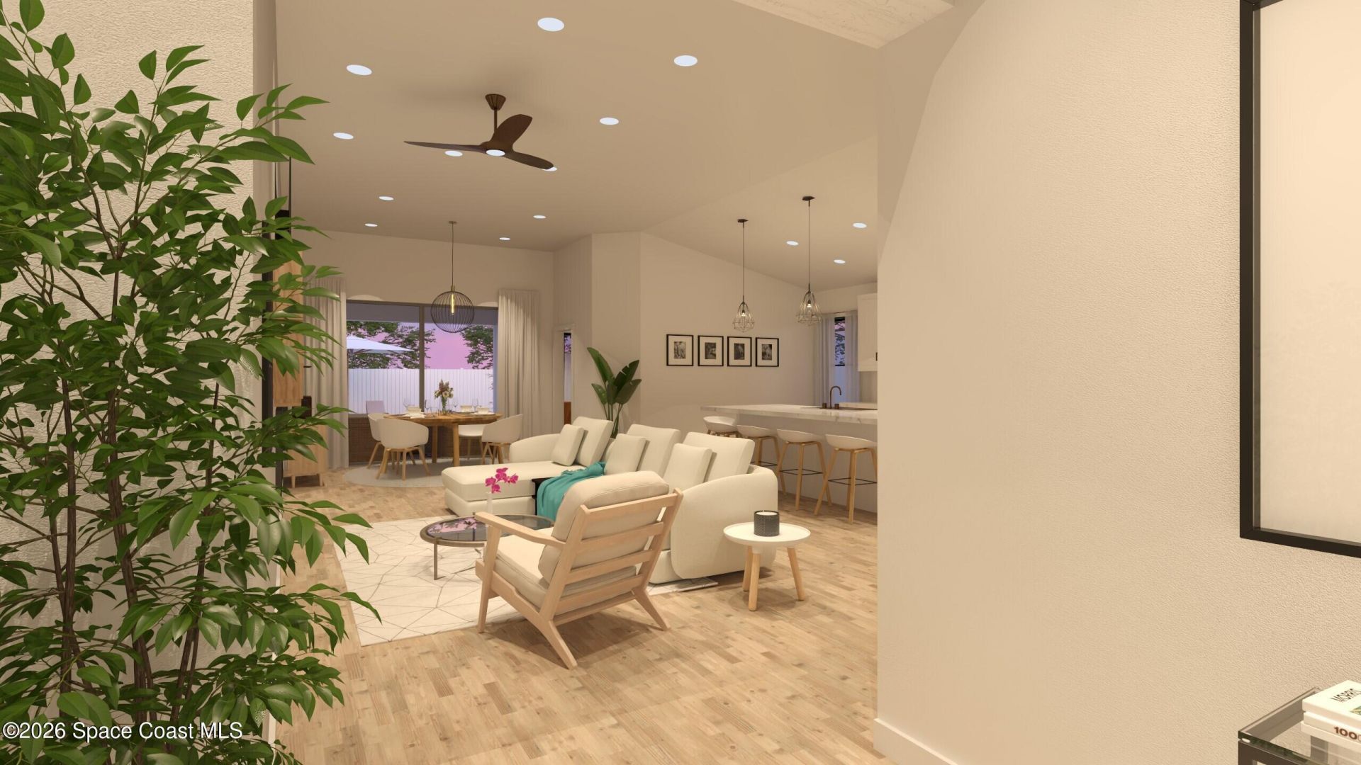 Discover the Solace, a beautifully designed 4-bedroom, 3-bath home blending open space, natural light, and everyday functionality. Soaring ceilings and an open-concept layout connecting the living, dining, and kitchen areas, highlighted by an expansive slider that opens to a covered lanai, perfect for entertaining and indoor/outdoor living. Luxury vinyl flooring in living spaces and recessed lighting run throughout home. Designed with flexibility in mind, this home features a private in-law suite ideal for guests or multi-generational living, complete with its own full bath. The chef-inspired kitchen includes quartz countertops, soft-close cabinetry, tile backsplash, and Samsung appliances including washer and dryer. Unwind in the spacious primary suite featuring a tray ceiling and spa-like bath with a luxurious bath tub and oversized tiled walk-in shower and many more upgrades! Schedule your showing today and experience the Solace for yourself. Photos are for samples purposes only.