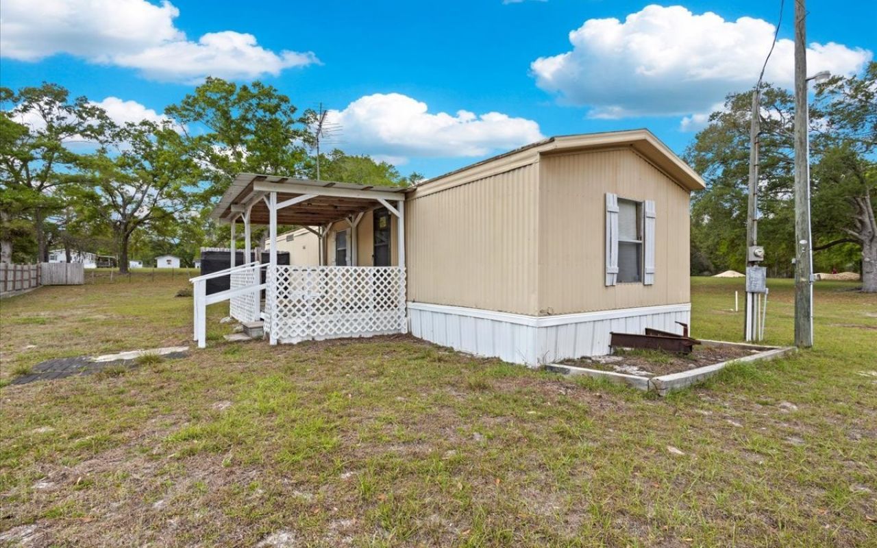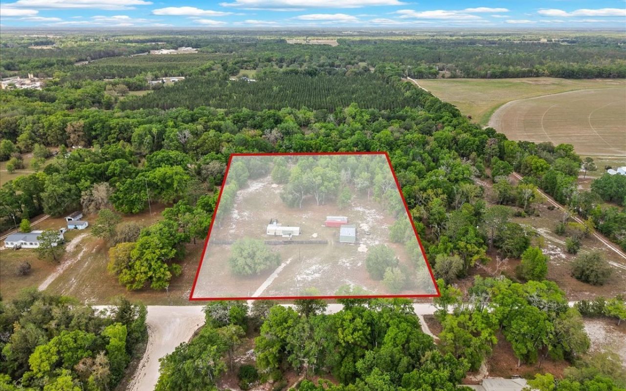 Enjoy peaceful country living just outside the city limits of Bell, Florida, on 5 beautiful acres! This 2-bedroom, 1-bathroom home sits on mostly pasture land that is fully fenced and ready for animals, making it ideal for a small farm, homestead, or anyone looking for space and privacy. The property features a 25x60 pole barn perfect for parking vehicles, equipment, or additional storage, along with two 10x40 storage containers that will remain with an acceptable offer. Recent updates provide added value and peace of mind, including a new well pump and tank (2025), new range/stove (2025), new back door (2026) and major improvements in 2024 such as the home being leveled and reinsulated with a new vapor barrier and new air conditioning ductwork. An outdoor shower adds a convenient touch for farm life and enjoying the Florida outdoors. Covered porches on front and back allow you to enjoy the beautiful landscape and watch the visiting deer in the backyard. With open pasture, room for animals, and useful outbuildings already in place, this property offers quiet rural living just minutes from town and local amenities.
