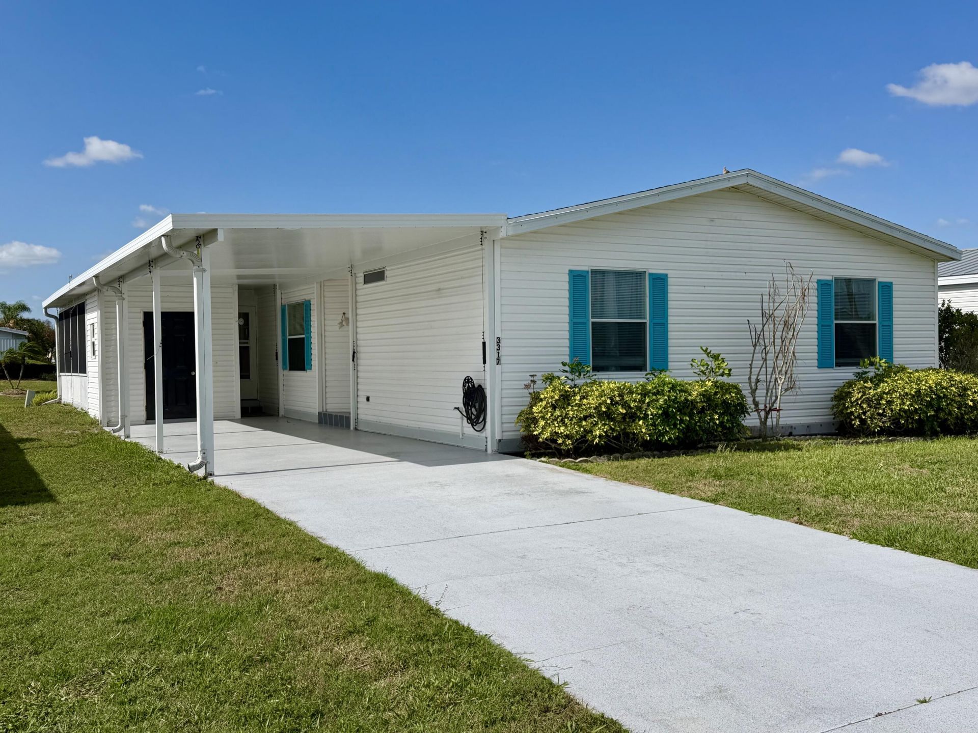 LAND OWNED! Waterfront 3 Bed/2Bath charming home with unlimited potential! This split floor plan offers privacy and flexibility and is an ideal option for investors, shared households, or those needing a home office. The large lanai overlooks the canal and is a rare opportunity in the heart of vibrant Savanna Club. The Main bedroom offers 2 walk in closets for maximum storage. Generous shed offers plenty of space for tools, garden supplies, and seasonal storage. With 3 bedrooms, water views, and the luxury of owning your own land this spacious home is waiting for your finishing touches.