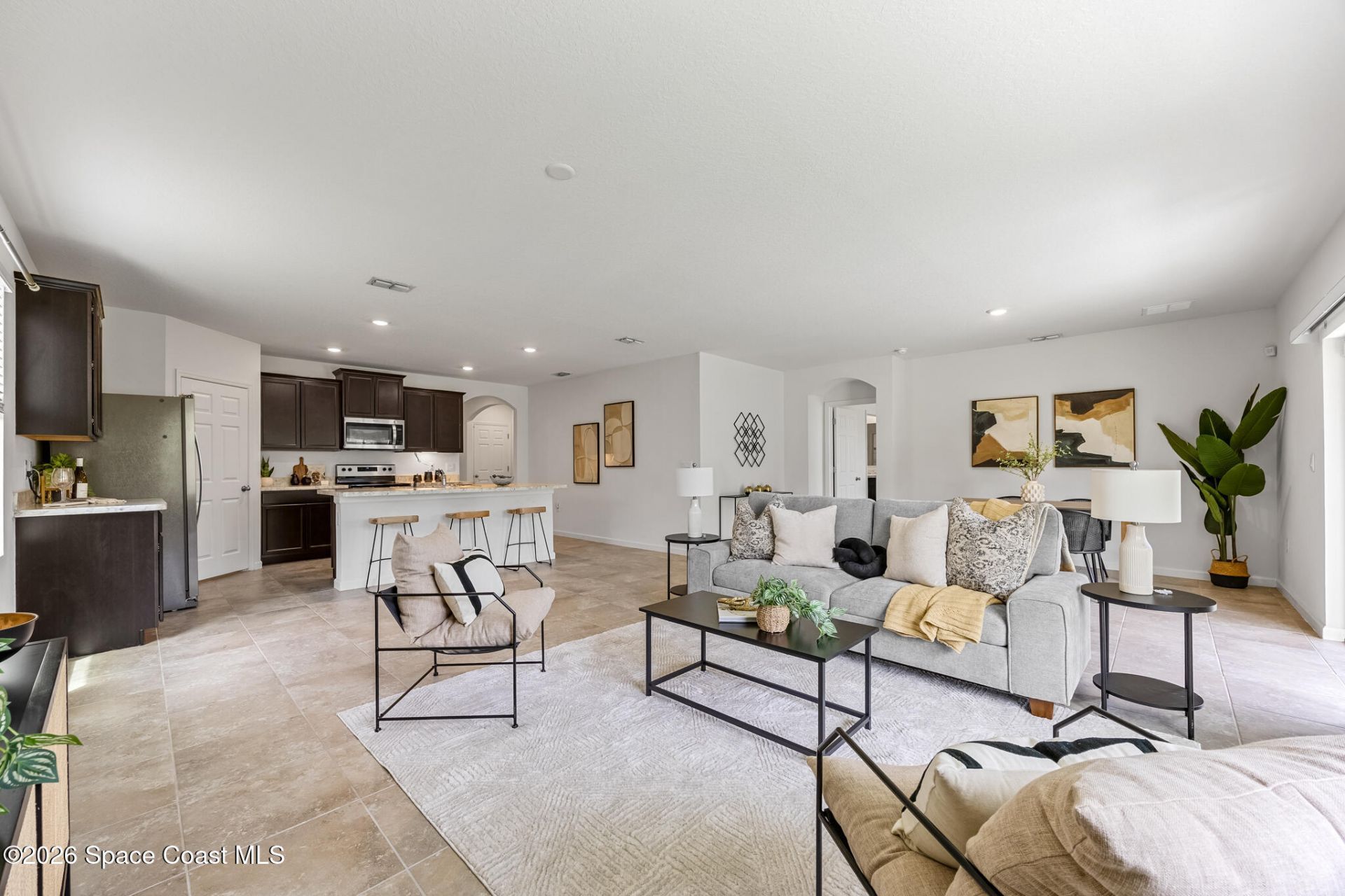 Move-in ready in desirable NW Palm Bay, on city water & sewer with underground utilities. Popular floor plan offering 4 bedrooms, 2 baths, and 1,918 sq ft of functional living space. Built in 2021, this concrete block (with stucco) home features a split floor plan, 9 ceilings, and tile throughout main areas with carpeted bedrooms. The open concept kitchen includes stainless steel Whirlpool appliances and flows seamlessly into the main living and dining areas. Situated on a quiet, (slow traffic) neighborhood street, this property stands out with added privacy and no direct rear neighbors, (backing to larger parcels for a more private feel) and NO house across the street (wooded lot). Conveniently located near top-rated schools, shopping, dining, and major roadways, this home offers the perfect balance of accessibility and peaceful living. Ideal for first-time buyers or those looking to avoid new construction delays while still enjoying a newer home.