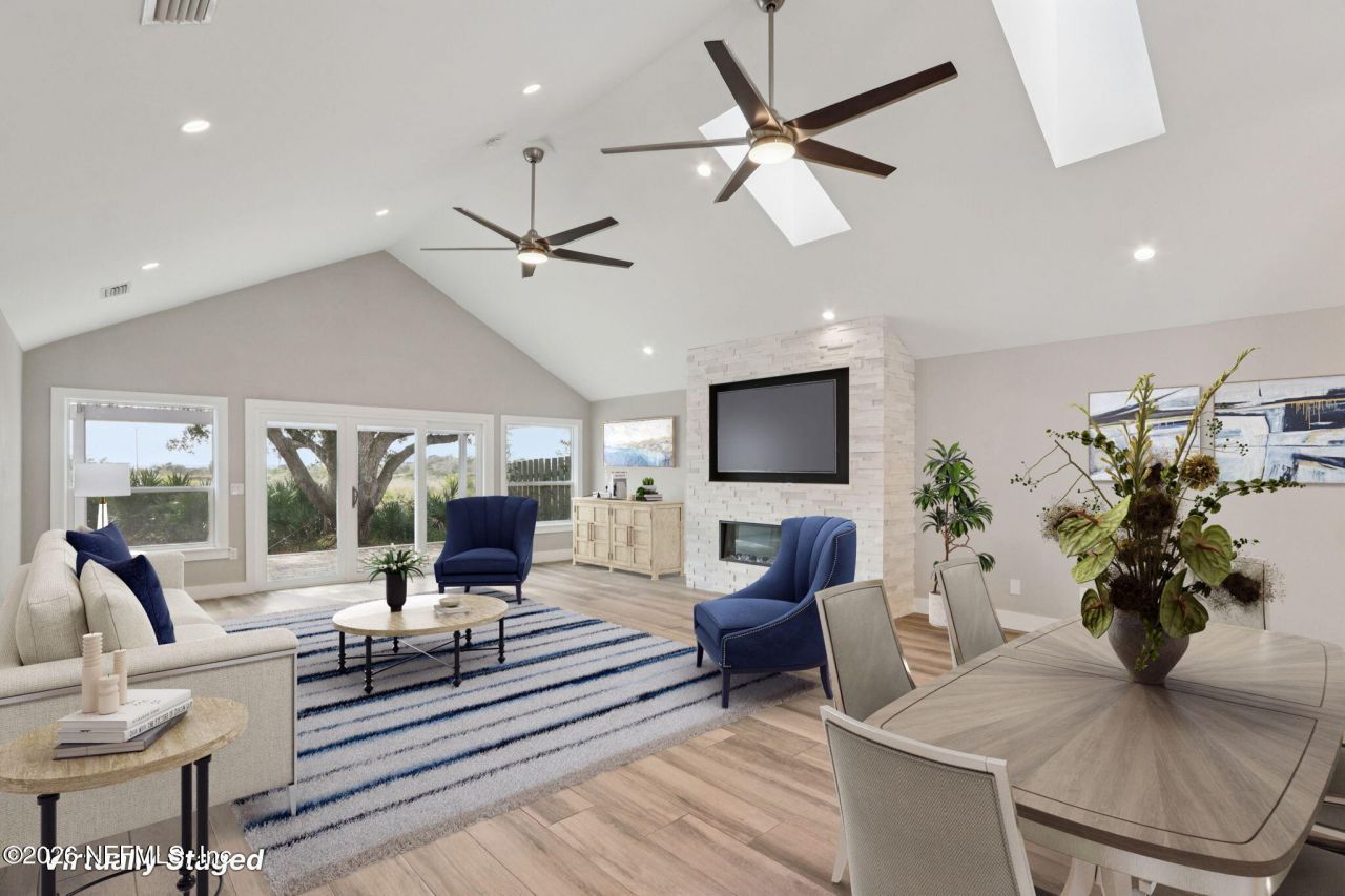 OPEN HOUSE SAT. 4/18 - 1:00-3:00 GORGEOUS HOME WITH PRIVATE BEACH & RIVER ACCESS. Lease Purchase & Lease available. Beautiful & Completely Upgraded 3/2/2 plus office home with no expenses spared, & walking distance to the Beach & Community Boat Ramp down the street! This home offers An Outstanding Gourmet Chef's Kitchen with High End Finishes which include 42'' Cabinets, with upper Cabinets & Crown Moldings, Quarts Counter Tops, Dove Tail Drawers, Soft Close, Pull Outs, Loads of Drawers, & Kitchen Aid Appliances, Tile Floors throughout, Fireplace with Quartzite Tiles, 13' Ceilings to Point in Main Living Areas, and 12' to Point in Primary Bedroom. Spectacular Views from large screen lanai of the Marsh, Intercoastal & Downtown St. Augustine. Roof less than 2 years old, Newer A/C & Hot Water Heater, Great Storage, heated floors in the main Bathroom, Touchless Kitchen Faucet, 2 Primary Suites. Garage Attic has lots of storage. Indoor & Outdoor Pools, Spa, Tennis & Pickle Ball Courts... Basketball Court. Only a mile to Publix, Restaurants, & Shopping...and less than a 10-minute drive to Downtown St. Augustine. Brand New Furniture Negotiable!