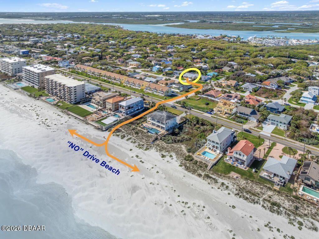 Beautiful 2 bedroom/2 1/2 bath screened pool home located in the charming coastal town of Ponce Inlet. Superb location just one block to the pristine ''no drive'' beach access. This well-maintained home boasts coastal decor featuring a new roof, new impact windows & doors, new HVAC duct system, new pool pump, new washer/dryer, and a new screened enclosure. From the moment you arrive, you'll notice the brick paver driveway, manicured lawn & landscaping contributing to this homes great curb appeal. The pavers also extend along the side of the home to create a walkway to the large paver patio in the rear PVC fenced yard which is perfect for gathering with friends or quiet meditation while hearing the sounds of the surf and smelling the salt air. A welcoming covered front porch adds to to the relaxed seaside charm. Glass block panels flank the front door welcoming coastal sunshine into the home, and the east west exposure allows you to see beautiful sunrises & sunsets every day! Once you enter, you'll notice the high ceilings, spacious open floor plan, abundance of natural light and beautiful shiplap accents. The open-concept living room has sliders to the pool/patio area and also features a cozy electric fireplace. The fully-equipped kitchen has white cabinetry and a separate dining area. Wake up to coastal serenity in the spacious primary suite that overlooks the pool & features a walk-in closet and a sizable ensuite bathroom with dual sinks, walk-in shower and separate jetted tub. The comfortable guest bedroom is conveniently located adjacent to the full guest bathroom. Relax and enjoy the sparkling heated pool & spa with extended covered patio and an awesome frameless screened enclosure for a scenic view that blends with the surrounding landscape. There's also a separate pool bathroom contributing to this home's thoughtful layout and an outside hot/cold shower perfect after enjoying the beach! The large two car garage has protective shark floor covering providing a durable and modern aesthetic. This high & dry property is located in flood zone X which means that flood insurance is NOT required. Furnishings Negotiable. Walk or bike to the historic Ponce Inlet Lighthouse & Jetty Park, Marine Science Center, waterfront restaurants (with entertainment), parks, marinas, dog park/beach, harter fishing, sailing, kayak/canoe, surfing, great fishing & a myriad of water sports. Close to shopping, pharmacy, hospital/medical facilities and more. Excellent school district. Approx. 1 hour to Orlando, theme parks, St. Augustine and other places of interest.