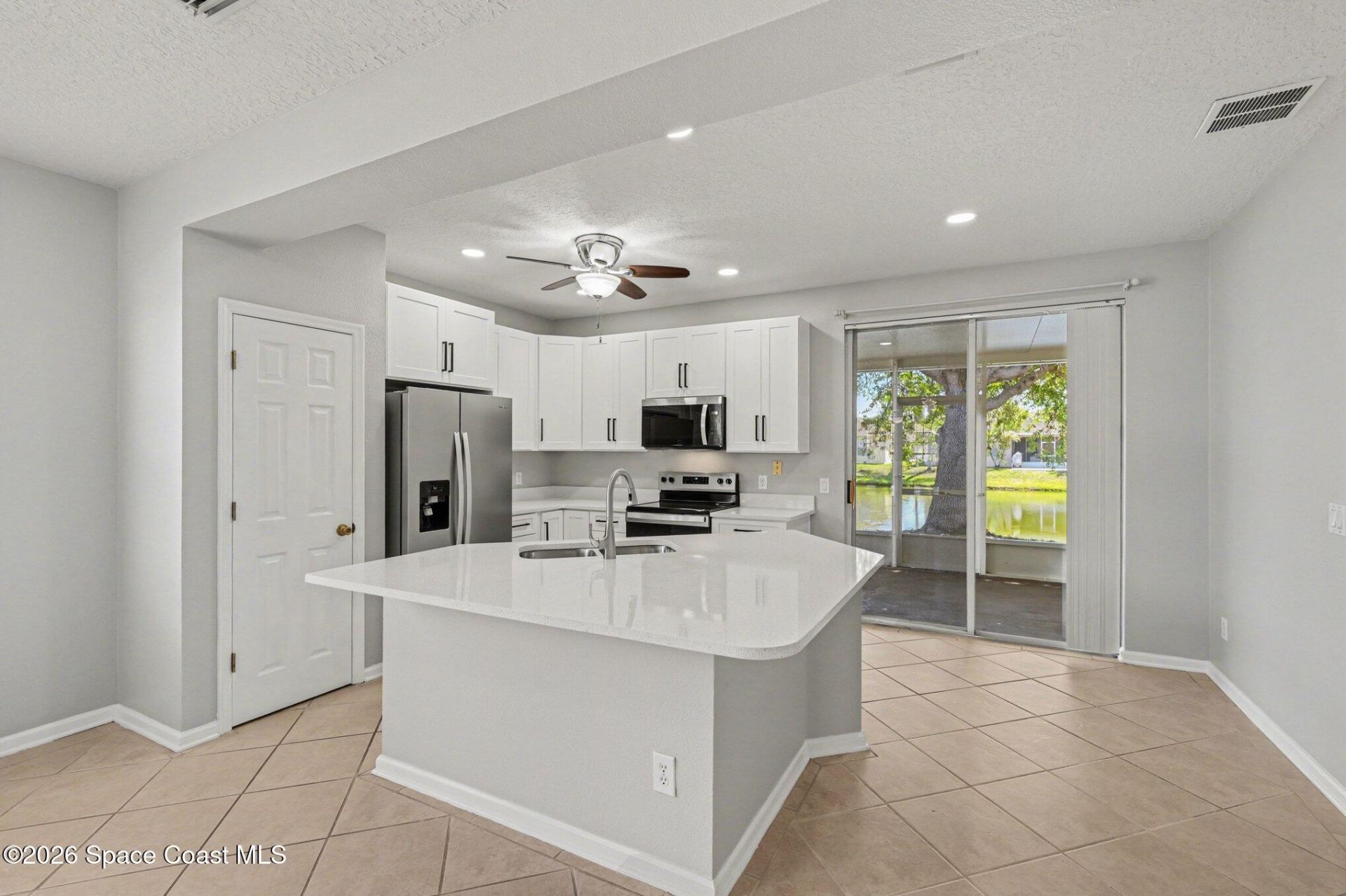 Beautiful home with completely remodeled kitchen & bathrooms and NEW ROOF in 2026! Located on a community pond in a peaceful neighborhood. Open floorplan features 3 bedrooms and 2 bathrooms with tile & vinyl flooring throughout. Rear screened porch offers tranquil water views. Kitchen well laid out with large prep island/breakfast bar, NEW stainless steel appliances, NEW cabinets & NEW countertops! Primary suite with NEW vanity has both a large soaking tub and a separate walk-in shower. Interior laundry room & 2 car garage. Roof replaced in 2017. All conveniently located near I95 for easy commuter access.