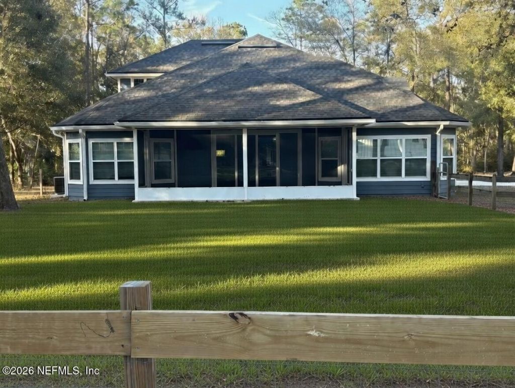 Located in coveted Lake Asbury, this 4-bed, 3-bath home built in 2017, spans 2,744 sq ft. and offers the perfect blend of refined living and everyday comfort.Set on a large, 1.44 acre wooded lot, the property welcomes you with an oversized driveway and 3 car garage, providing space for multiple vehicles. Inside, an open floor plan is enhanced by custom built-ins, quartz countertops throughout, and stainless-steel appliances, creating a seamless flow between living, dining, and kitchen spaces. The owner's suite is a true retreat, featuring a spacious layout, ensuite bathroom, and an large walk-in closet. 3 bedrooms are conveniently located on the main level, while the upstairs bedroom with a full bath and walk-in closet is ideal for guests or multigenerational living.Outside, the screened porch overlooks a fully fenced backyard, perfect for pets, play, or peaceful evenings surrounded by nature. Golf cart-approved community and just minutes from Ronnie Van Zant Park and playgrounds.