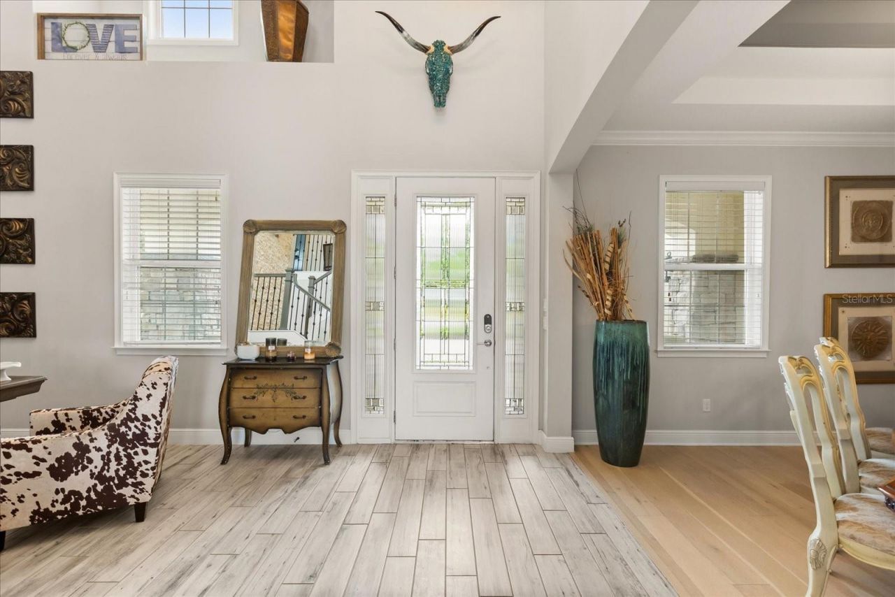 Experience lakefront luxury at its finest. Situated on the pristine shores of Lake Hancock in the gated Overlook at Hamlin, this 2020-built Mediterranean masterpiece offers the perfect blend of elegance and recreation. Boasting 6 spacious bedrooms and 4.5 baths, this home features an open-concept layout with soaring cathedral ceilings and high-end finishes throughout. The gourmet kitchen, complete with a massive island and walk-in pantry, flows seamlessly into the living areas-all offering stunning water views. Step outside to your private oasis featuring a salt-water pool and a custom composite dock (2022) ready for skiing or sunset cruises. With the primary suite on the main floor and a massive upstairs game room, there is space for everyone. Enjoy the best of Winter Garden living with top-rated schools and world-class community amenities.