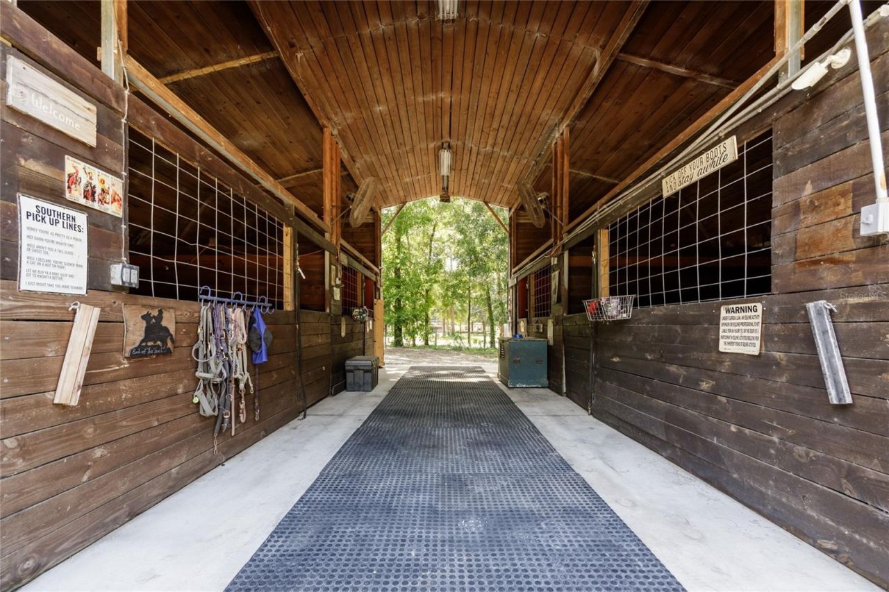 Endless Opportunities - 5.89 Acres, Prime Location! Located just 30 minutes from HITS, 45 minutes from WEC, and only 20 minutes from UF, this meticulously maintained 5.89-acre high and dry farm is move in ready for you and your horses. Zoned for agriculture and fully fenced with 4-board fencing, this property is ideal for both horse boarding and building your dream home. Each paddock connects for easy pasture rotation and has water access already in place. The barn features a sturdy metal roof, concrete flooring, and spacious birthing stalls perfect for a working equestrian setup. Tack Room is a 12 x 30 shed that could be converted into a Tiny Home, there is also a full bathroom with a shower on the property. Beautiful shaded area with a very large fire pit. Don't miss this rare opportunity to horse farm, that is well appointed horse property.Features Include:-6-stall barn with center aisle, hay room. -2 extra bonus stalls behind the barn. -Stained barn wood on ceilings and throughout completed in 2023.-Fans in barn and stalls.-12x30 A/C tack room and separate full bathroom with running water.-Lighted round pen and irrigated full course jumping riding arena.-Concrete wash racks and dedicated feed room.-8 fenced pastures - 4 with run-in shelters and water access to all.-30/50 amp RV hookups.-Septic system in place.-Miles of sugar sand trails directly off the property.-2 Entry Gates to access property.-The 2 run off stalls on the back side of the barn with 12x15 ft runouts that lead into pasture.-Clay Electric.-Security and camera throughout.-Dust to dawn solar powered lights, flood lights, and round pen with lights.