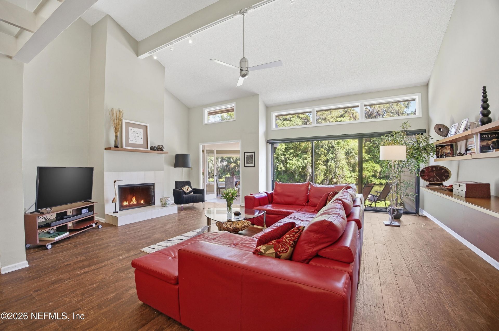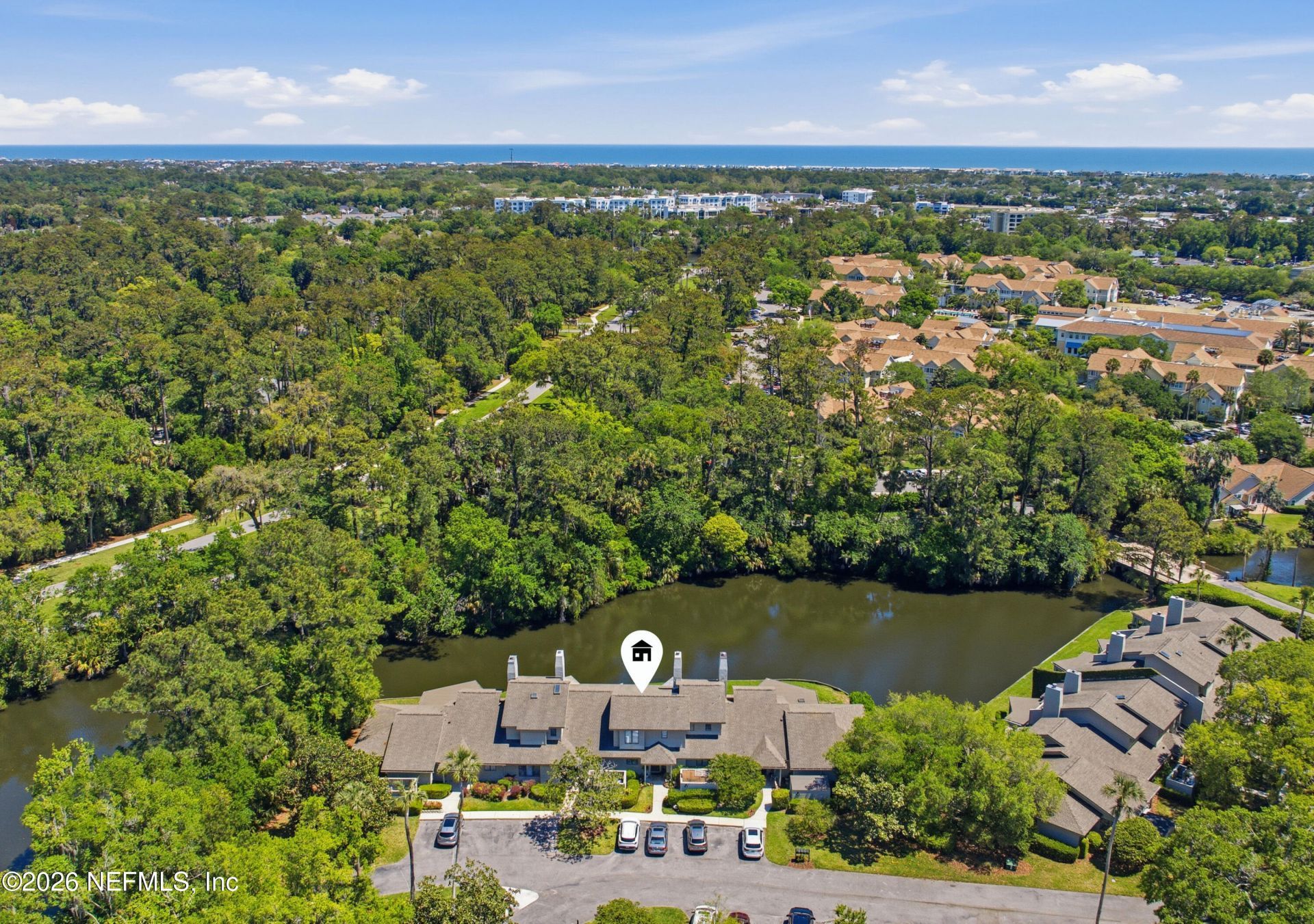 Wake up to peaceful pond views and the quiet privacy of mature trees in this beautifully updated Players Club Villa inside the gates of TPC Sawgrass. The main-level primary suite was completely remodeled in 2024 with a new vanity, quartz countertops, designer tile, and a spacious walk-in shower, all finished in neutral tones. Warm, wood-look 6'' plank tile flooring enhances the living and dining areas, which are filled with natural light from soaring vaulted ceilings. With both downstairs and upstairs primary suites, this home offers the flexibility and comfort today's buyers want, while opening to a private deck overlooking the water for a true retreat-like setting. Spend your weekends at The Yards, offering golf, tennis, and pickleball, or take advantage of your proximity to PGA TOUR headquarters and the world-famous TPC Sawgrass courses. A rare opportunity to enjoy luxury, convenience, and the best of Sawgrass living. The upstairs primary suite provides a private escape, complete with its own balcony and a beautifully remodeled spa-style bath featuring a tranquility soaking tub, pebble-bottom shower, and dual vanities. The thoughtful layout allows for ideal separation of space, making it perfect for hosting guests, extended family, or creating a dedicated work or hobby area.A sunroom off the main living area and downstairs bedroom offers additional flexible space to relax while enjoying serene pond and tree-lined views. The kitchen is functional and well positioned within the home, connecting easily to the main living areas and offering an opportunity for future personalization. A wet bar adds both character and convenience for entertaining.Flooring includes 6 wood-look ceramic tile in the main living areas, tile in the kitchen and baths, and carpet in the bedrooms for comfort. Positioned in a quiet cul-de-sac and private section of the community, this home offers a peaceful setting that is increasingly hard to find.Players Club Villas provides a true lock-and-leave lifestyle with exterior maintenance, insurance, and security included, all within the gated Sawgrass Players Club community. Just moments from world-class golf, dining, and the beaches of Ponte Vedra, this property is ideal as a primary residence or second home for those seeking space, privacy, and low-maintenance living in one of Northeast Florida's most recognized communities.