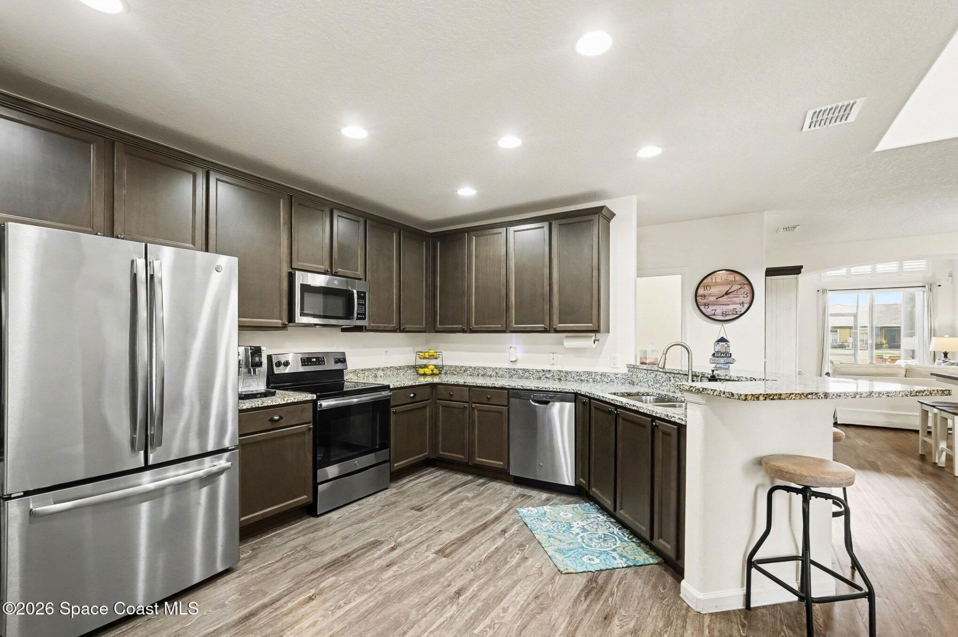 Indulge in refined coastal living in one of Brevard Countys most coveted communities. Located in the prestigious Montecito enclave, this immaculate 2018 townhome offers resort-style elegance just moments from the ocean. Barely lived in, the home features upgraded LVP flooring throughout and a seamless open-concept design, with an upgraded kitchen flowing effortlessly into the dining and living areas--perfect for elevated entertaining. Step outside to a beautifully designed patio with a custom pergola, creating a serene outdoor retreat overlooking tranquil pond views. Upstairs, a spacious loft adds architectural charm and versatility, while two generously sized bedrooms and a well-appointed bath complete the space. Additional highlights include an expanded driveway, hurricane shutters, and screened-in porches for year-round enjoyment.Experience effortless luxury and coastal sophistication in this exceptional residence.